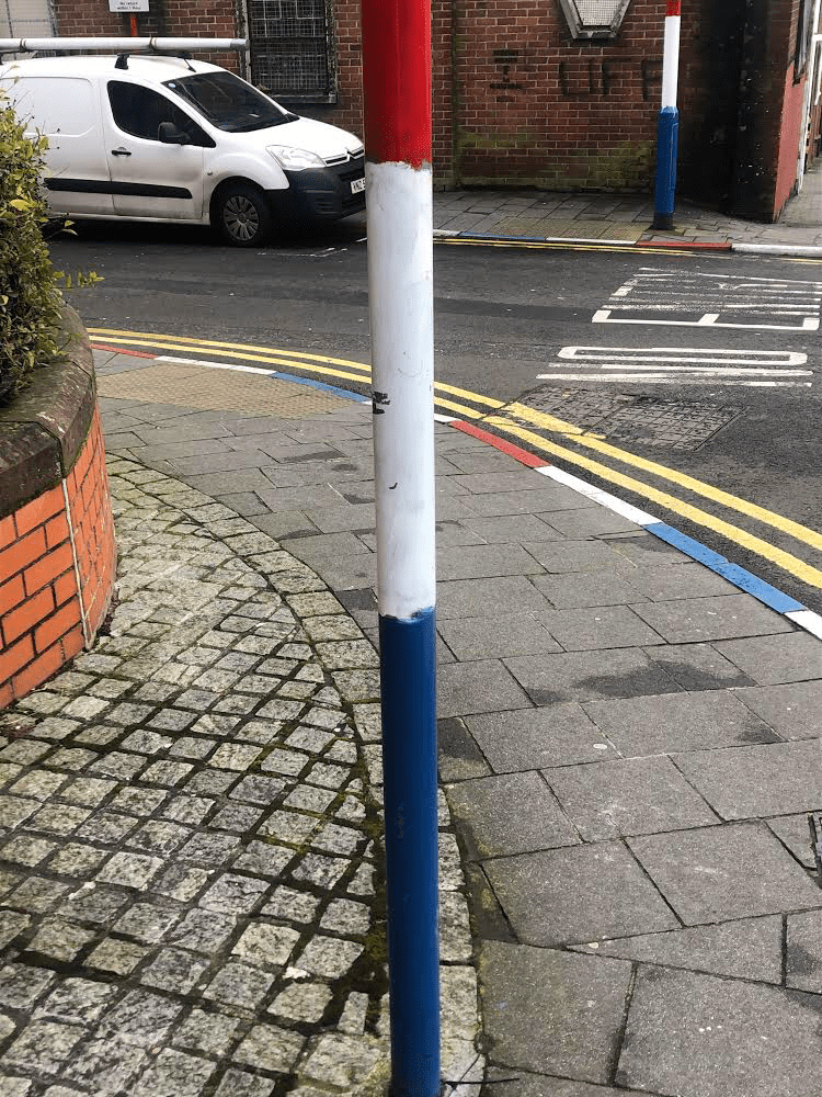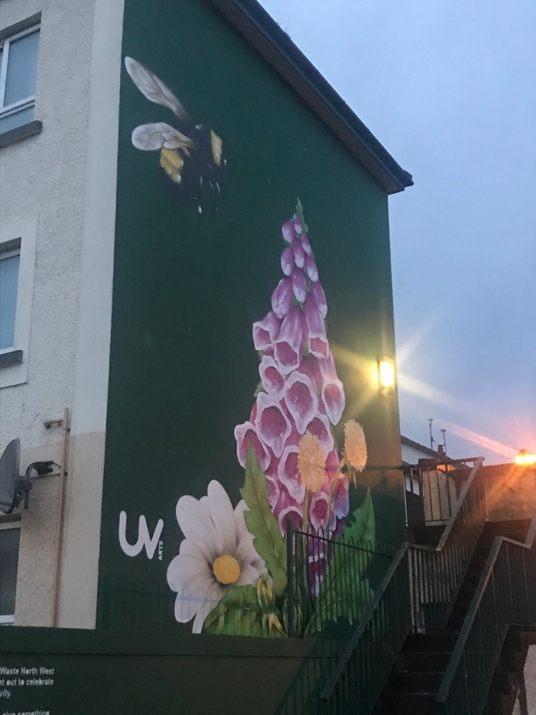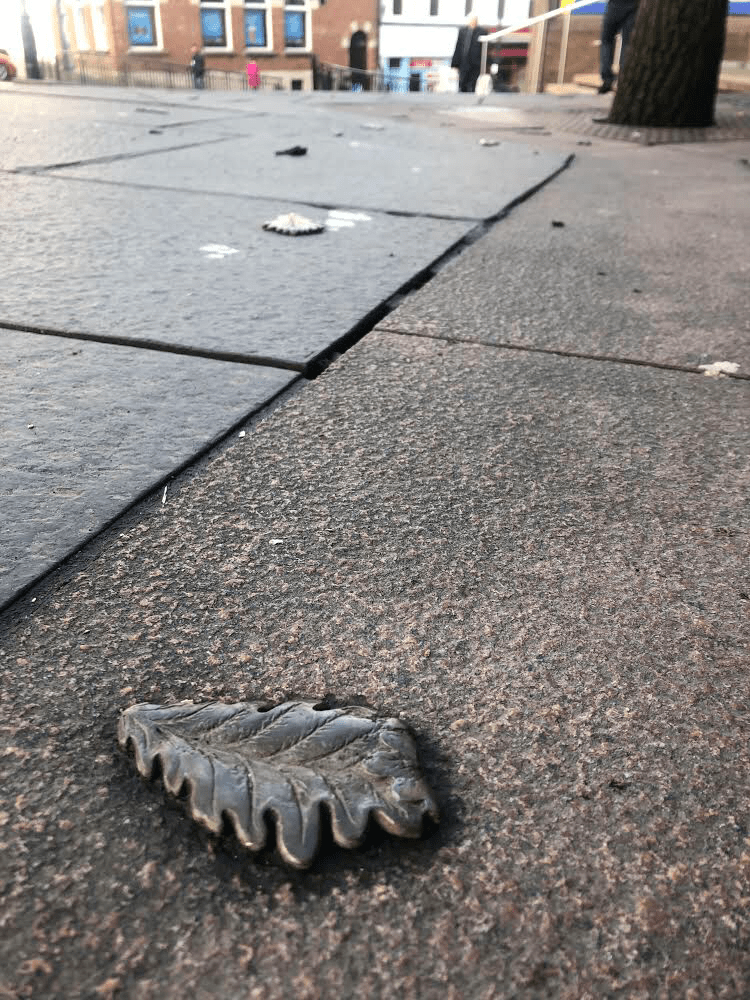 While most guides may gear you toward looking at the town’s marvelous murals, the peace bridge, and the famous Derry wall, I implore you to simply look down. Traces of the town’s history and boundary lines can be seen under ones feet. Small brass oak leaves lie implanted in the pavement around the city, they frequent the ground under oak trees and benches, giving tribute to the founding of Derry. Right outside the city walls, street corners and stop signs are painted in the famous red, white, and blue, marking the territory as a Unionist territory. Further showing who is and who is not welcome here. While it’s easy to see community partnerships occurring in Derry, there is still a lot to be done. All we can do now is take one step at a time.